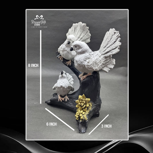 Love Nest โ White Love Bird Family Resin Sculpture on Tree Bark