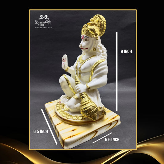 Shree Hanuman โ Premium White Marble Dust Idol with Gold Foil Detailing