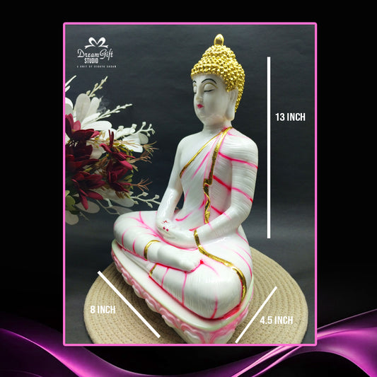 Serenity in Shine โ Glossy White Buddha Statue with Pink Highlights & Golden Crown
