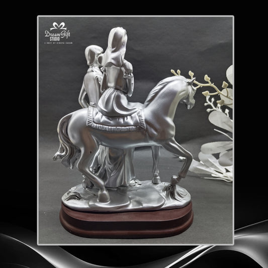 "Timeless Bond" โ Silver-Plated Couple with Horse Artistic Statue