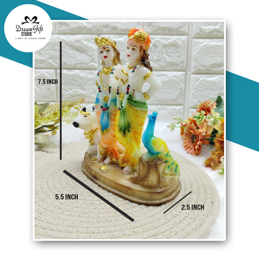 The Divine Bond: Radha Krishna with Peacock & Cow