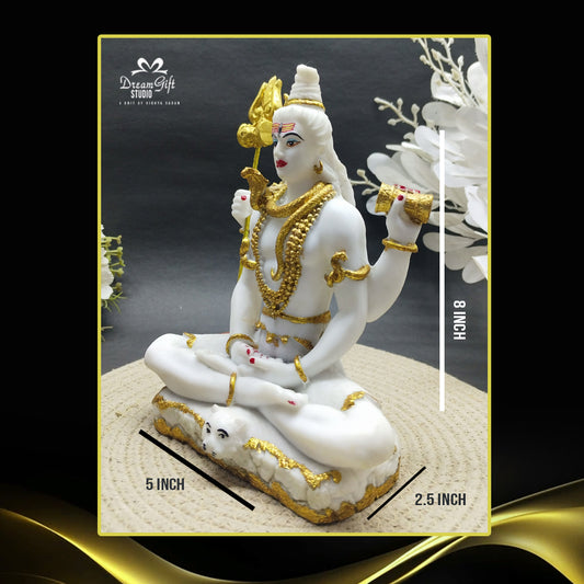 "Shiva in Serenity โ Pure White Idol with Golden Detailing"