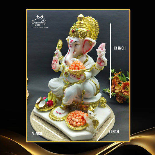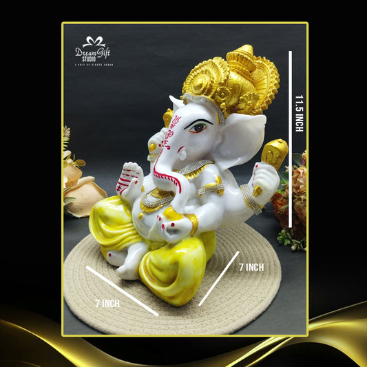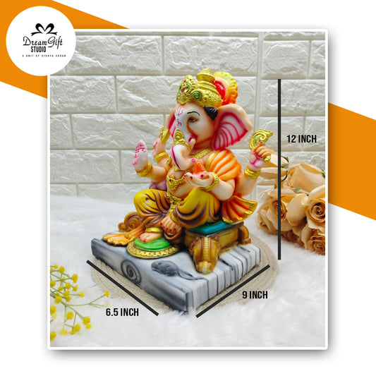 "Divine Maharaja Ganesha โ Artistic Marble Dust Sculpture in Rich Colors"