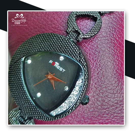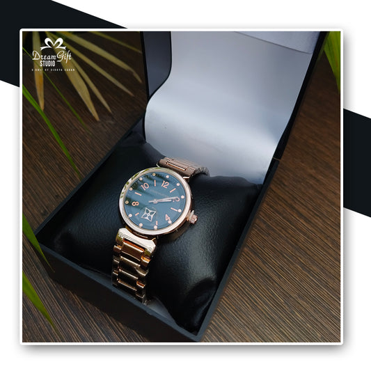 LV Style Rosegold Chain Black Dial Premium wrist Watch for Her