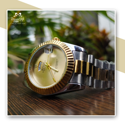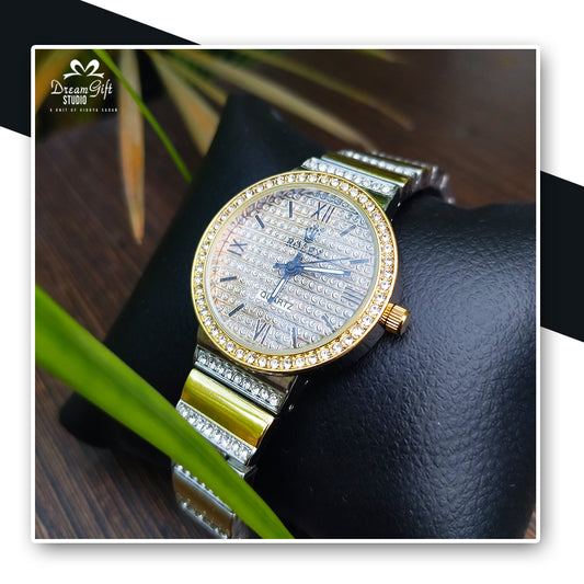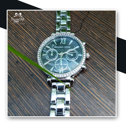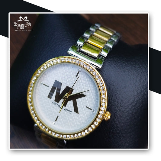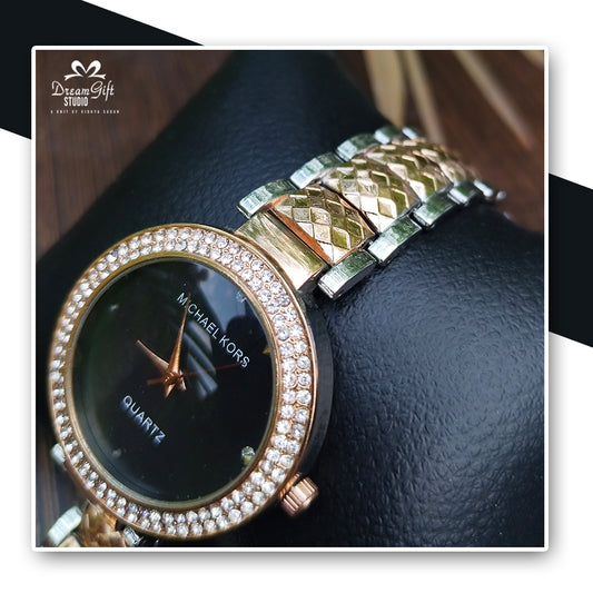 Michael kors style Gold & silver chain Black dial Studded premium wrist watch for her