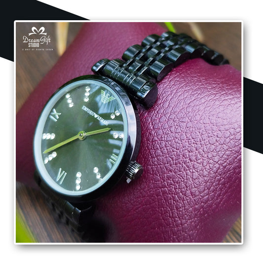 Emporio Armani Diamond-Cut Watch With Black Dial for Her