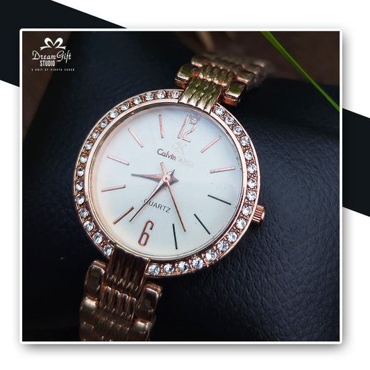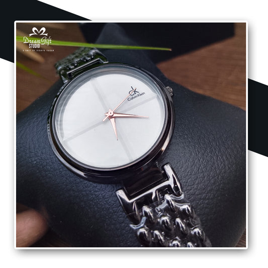 CK Designer Watch Premium Rose Gold Chain & White Dial