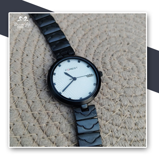Unisex Silver Watch With Black Dial For Him & Her โ Elegant Design with Crystal Bezel