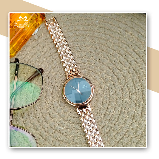 CK Style Rosegold Chain Black Dial Premium wrist Watch for Her