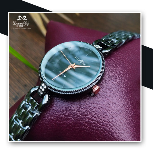 Custom Fashion Watch - Modern Dial with Black Chain For Her