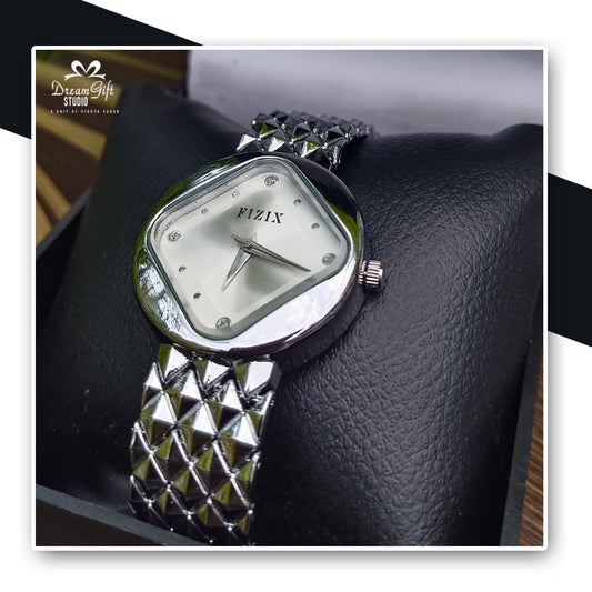 FIZIX Elegant Watch Shiny Silver & Textured Strap