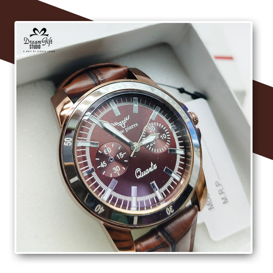 Luise Pierre Men's Watch โ Rich Brown Dial with Dual Subdials and Matching Leather Strap