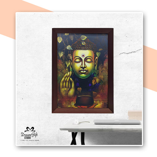 Golden Foil Serenity Buddha Wall Art Brown Frame | 14ร20 inches