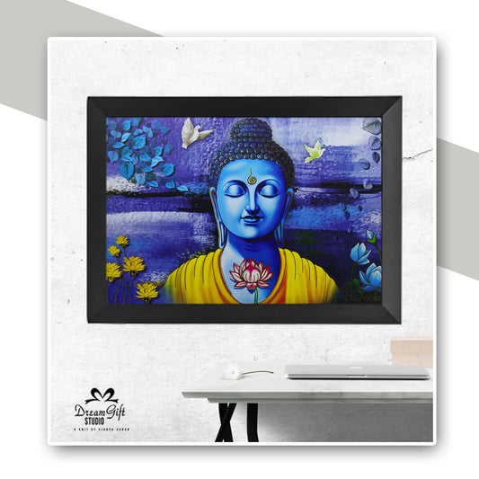 Blue Aura Buddha Wall Art Frame | 14ร20 inches | Black Border