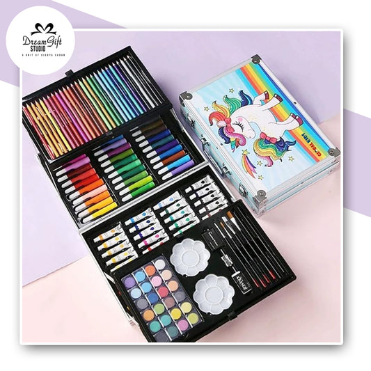 🦄✨ Unicorn & Astronaut Deluxe Art Briefcase – 145 Pcs Drawing Kit for Kids 🚀🎨