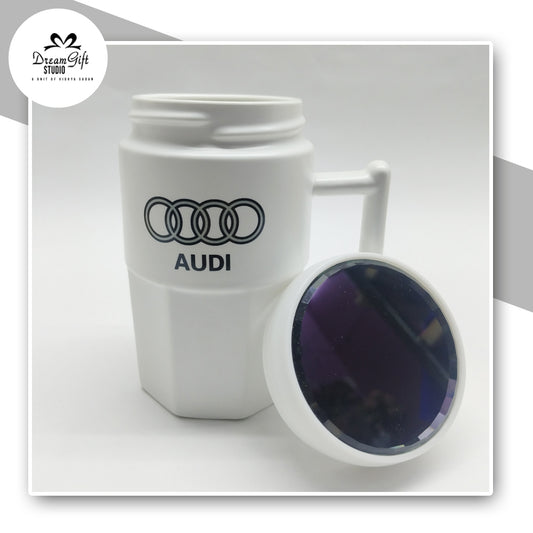 Luxury White Mug โ Audi Logo & Mirror-Finish Cap