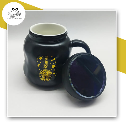 Chic Black Curved Mug with Gold Starbucks Print & Mirror-Finish Lid
