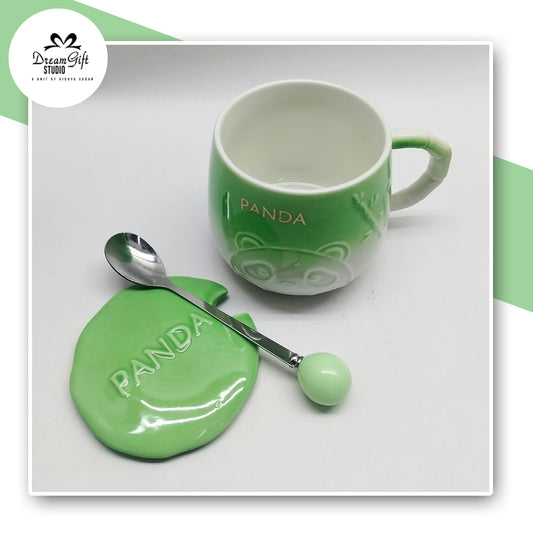 Green Panda Mug โ Ceramic Lid with Matching Spoon