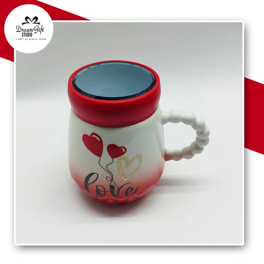 Striking Red & White Dualtone Ceramic Mug with โLoveโ Print, Mirror Lid & Sculpted Handle
