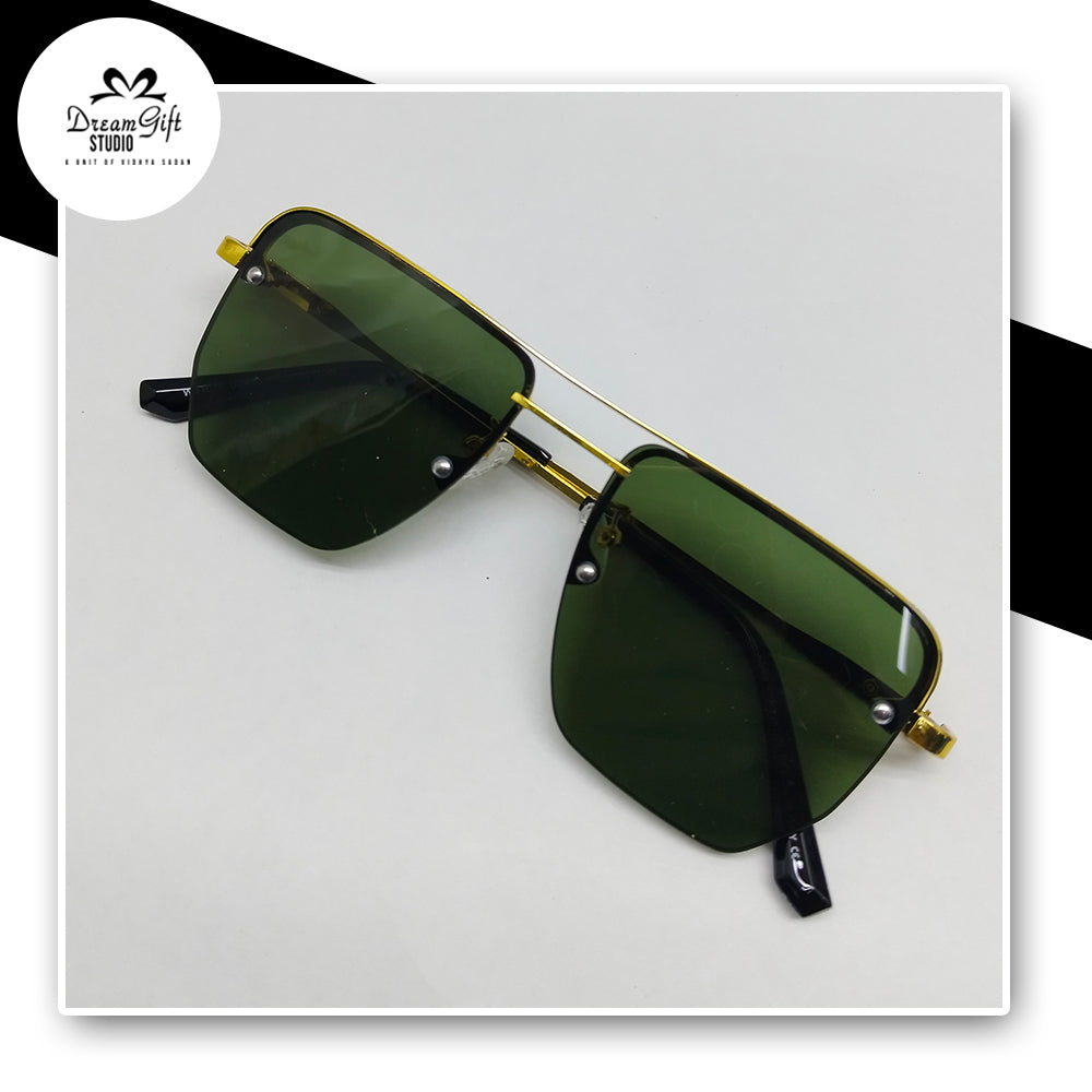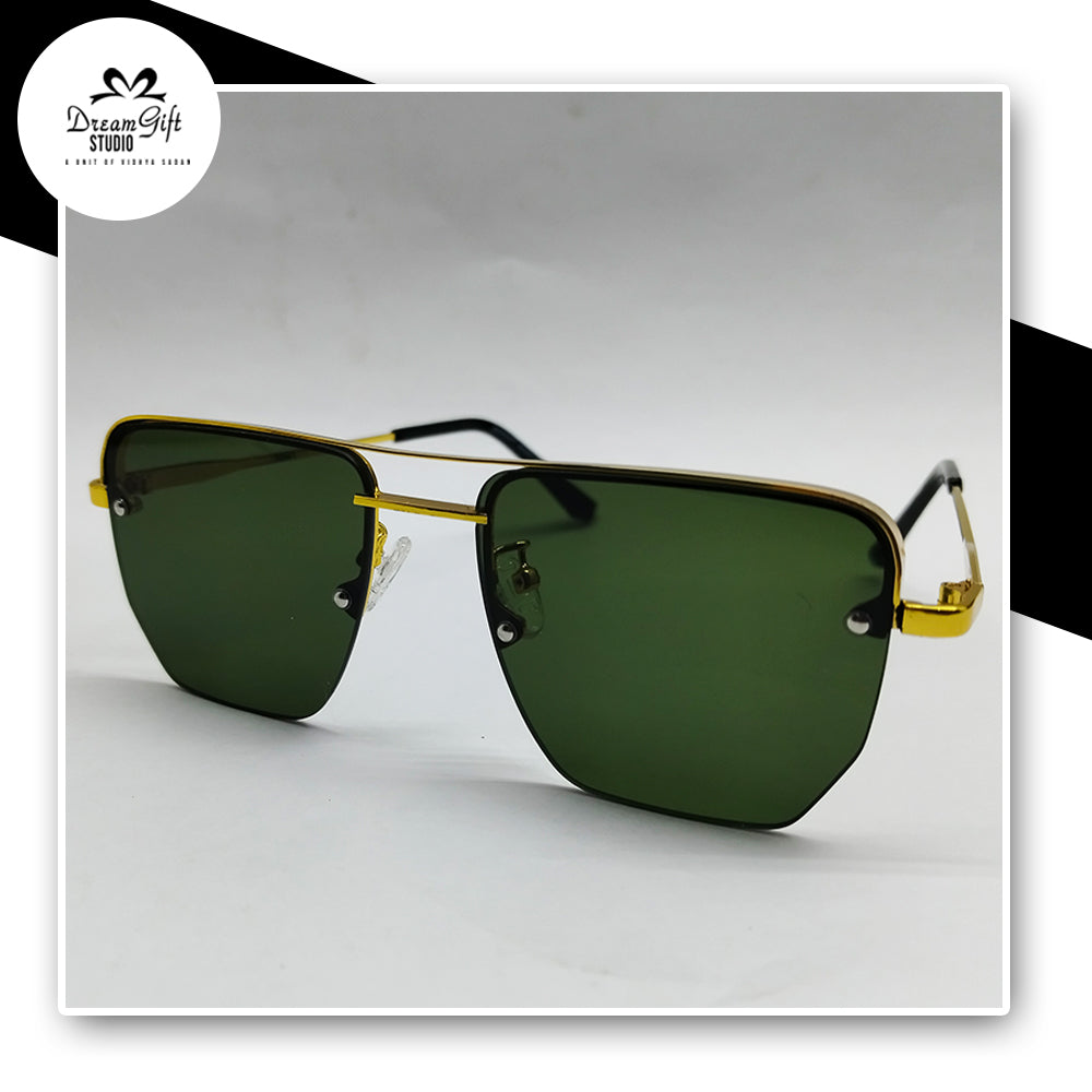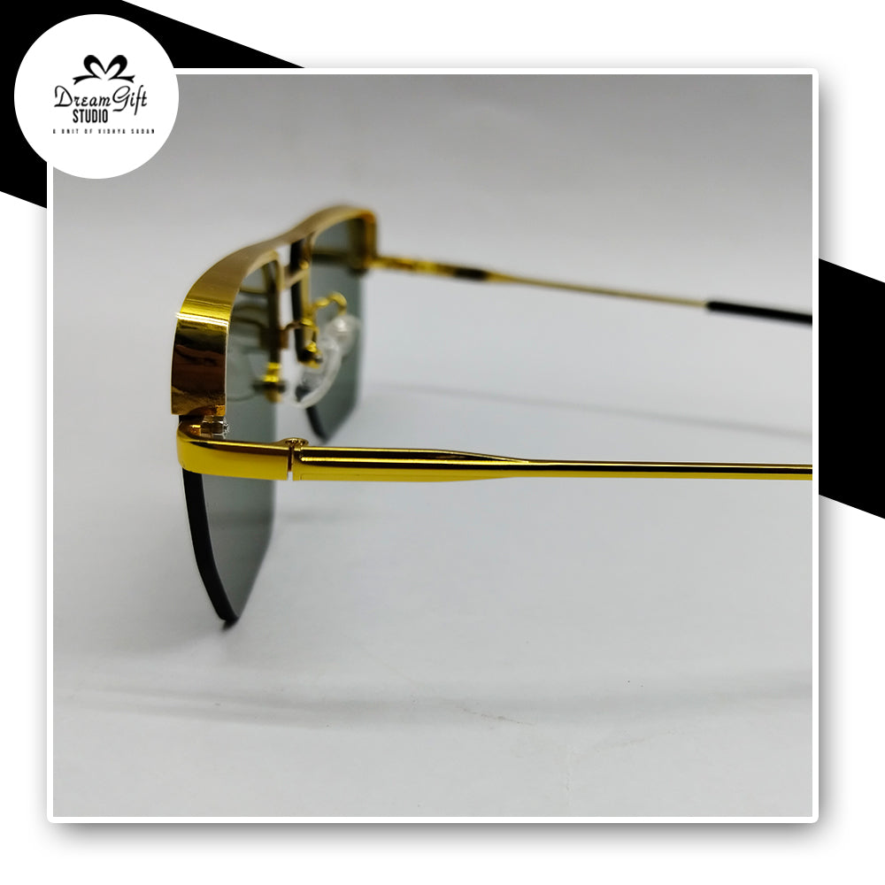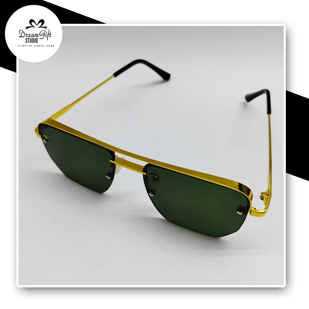 Gold Rimless Shield Sunglasses – Dark Green Tinted Lenses