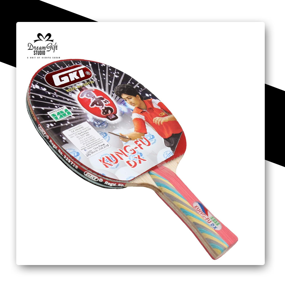 - Brand and Model: This is a GKI KUNG-FU DX branded table tennis racket, signifying a specific model from the GKI line