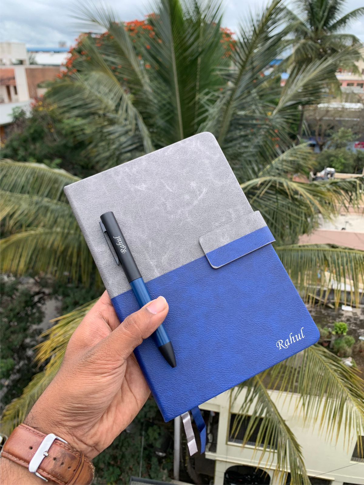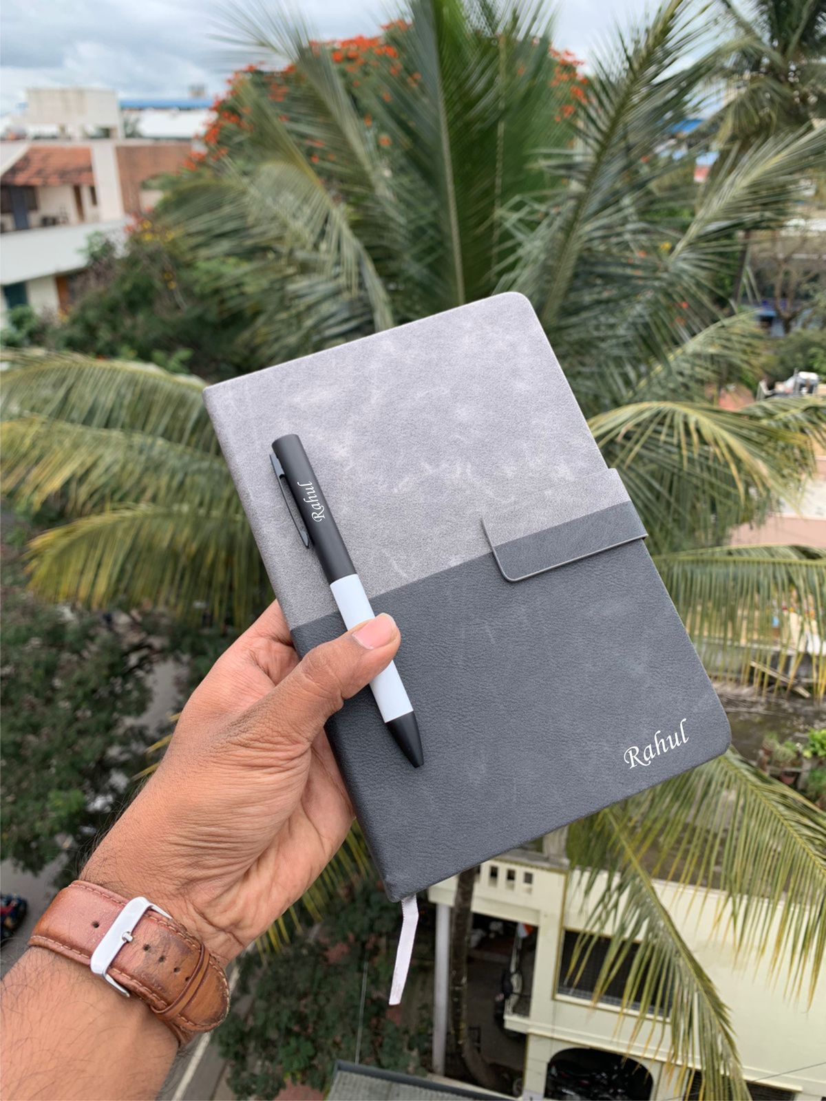Our product offering includes a sleek dual-tone Fushion Dairy and a premium Boston pen, making for a practical and thoughtful gift. To add a personal touch, we offer the option to customize the common name on both the diary and pen.